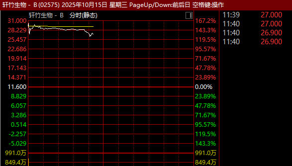 今日,轩竹生物在港交所上市交易,盘中一度大涨逾167%,截至发稿,涨幅略有回撤,但仍大涨逾130%。