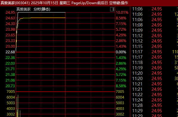 小红书概念、抖音概念、网红概念、跨境电商等相关板块纷纷跟涨,真爱美家(003041)开盘仅约4分钟就直线涨停,久其软件、香山股份、远大控股等亦强势封板。